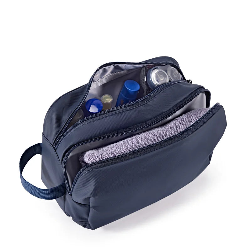 Crafted from premium water-resistant polyester, this toiletry bag is easy to wipe clean and built to withstand the demands of travel. The spacious main compartment features elastic straps to hold bottles upright, while multiple interior pockets provide structured organisation for toiletries, cosmetics, and shaving supplies.